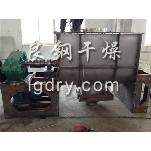 以高效、快速混合物料、由攪拌軸的螺旋帶運(yùn)動(dòng)下,使內(nèi)外螺旋帶在較大范圍內(nèi)翻動(dòng)物料,內(nèi)螺旋帶將物料向兩側(cè)運(yùn)動(dòng),外螺旋帶將物料由兩側(cè)向內(nèi)運(yùn)動(dòng),使物料來(lái)回滲混,另部分物料被螺旋帶推動(dòng)下,沒(méi)軸向徑向運(yùn)動(dòng),從而形成對(duì)流循環(huán)。由于上述運(yùn)動(dòng)的攪拌,物料在較短時(shí)間內(nèi)獲得快速…